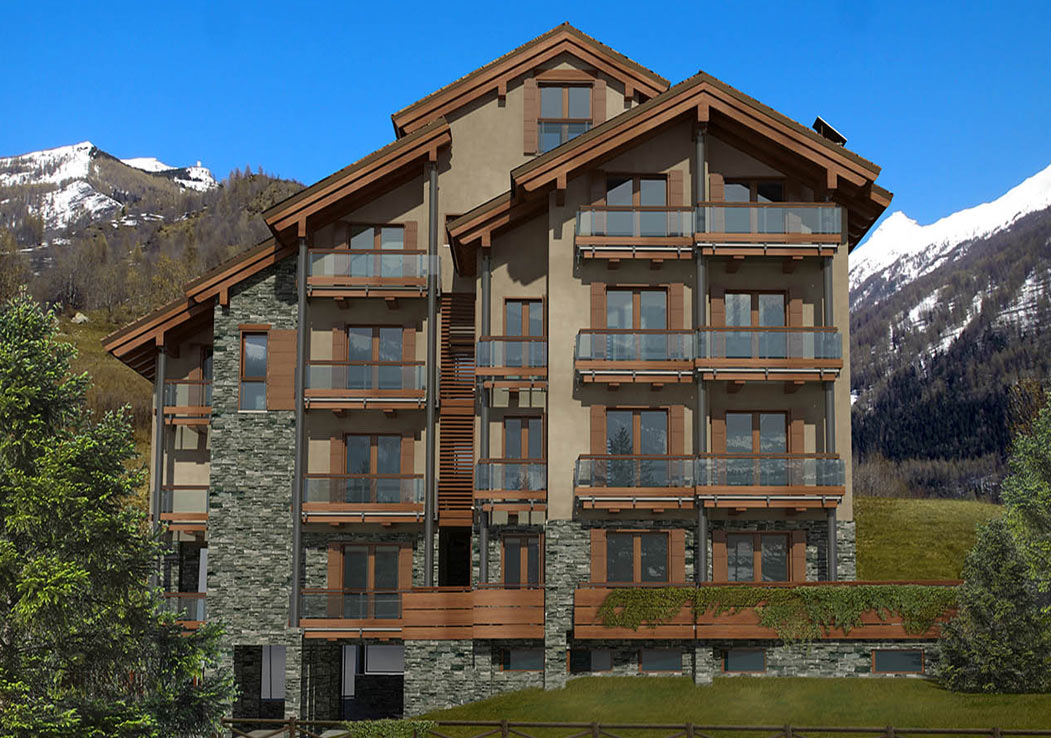 Progetto di edificio di civile abitazione di 7 appartamenti con autorimessa interrata a Bardonecchia (TO), via Pietro Micca, 2012/ 2016